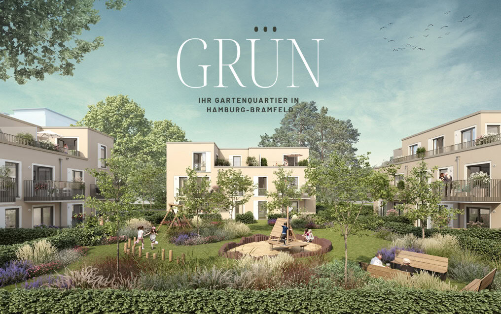 Das Gartenquartier GRÜN zwischen Bramfelder Chaussee und Bramfelder Drift ist in den Verkauf gestartet. Hier entstehen 25 attraktive Neubau-Eigentumswohnungen unterschiedlicher Größe um einen wunderschön groß angelegten Garten. Die Fertigstellung ist für das Frühjahr 2028 geplant. Informieren Sie sich jetzt!